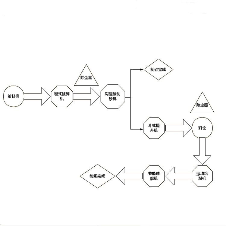 李總聽到后立馬讓我公司設計生產(chǎn)線的方案。李總需要破碎的煤矸石原料為200mm左右,產(chǎn)量要求達到100噸。根據(jù)他的需求,我們給出的設計方案為使用鄂破、對輥制砂機進行破碎制砂。李總還提出在成砂之后想要進一步制成漿,因此后續(xù)還會使用到節(jié)能球磨機。為實現(xiàn)環(huán)保生產(chǎn),特在生產(chǎn)線中配備了除塵器,確保符合生產(chǎn)環(huán)保標準,實現(xiàn)無塵綠色生產(chǎn)。具體配置如下:
